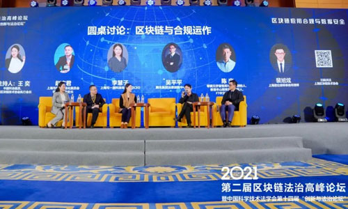 上午還進(jìn)行了以區(qū)塊鏈與合規(guī)運(yùn)作為主題的圓桌論壇,由上海區(qū)塊鏈技術(shù)協(xié)會(huì)王奕會(huì)長主持,邀請了上海市經(jīng)濟(jì)信息化委員會(huì)綜合規(guī)劃處處長趙廣君,上海可一澈科技有限公司CEO李慧子、騰訊集團(tuán)法律創(chuàng)新中心總監(jiān)吳平平、上海君倫律師事務(wù)所裴旭炫律師通過圓桌對話的形式,就產(chǎn)業(yè)區(qū)塊鏈建設(shè)以及上海數(shù)據(jù)條例對區(qū)塊鏈應(yīng)用帶來的相關(guān)法律問題展開了深度對話。
